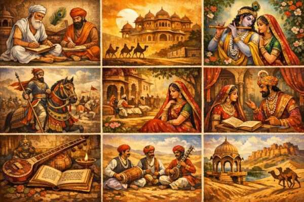 • डिंगल परंपरा मुख्यतः चारण कवियों द्वारा विकसित की गई, जो युद्धवीरों की प्रशंसा और वीरता‑वर्णन के लिए प्रयुक्त होती थी।